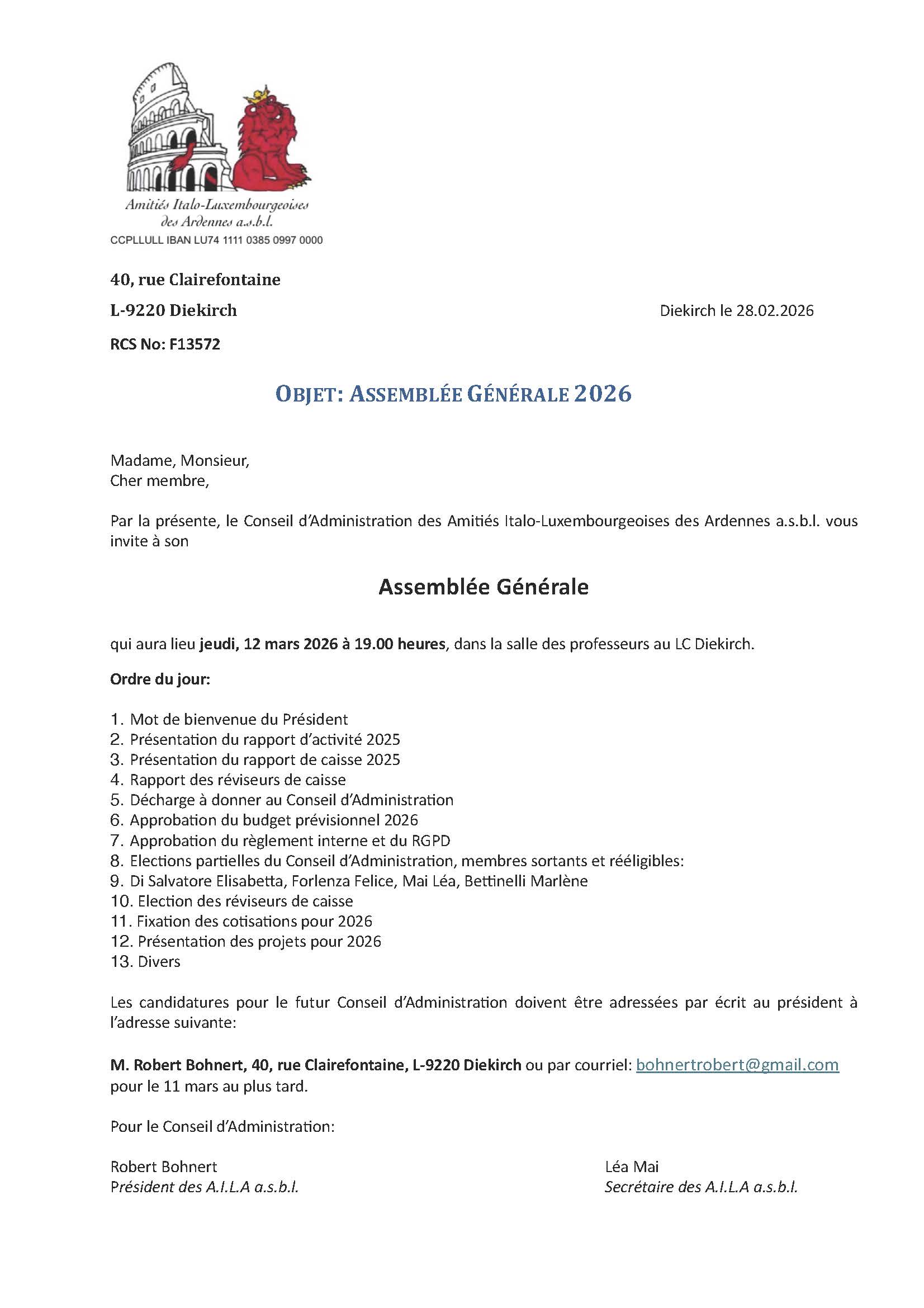 La CA des AILA a.s.b.l.